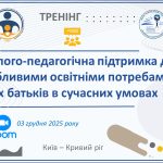 Відповідно до плану заходів Інституту спеціальної педагогіки і психології імені Миколи Ярмаченка НАПН України, затвердженому НАПН України, 3 грудня 2025 року в онлайн-форматі відбувся тренінг на тему «Психолого-педагогічна підтримка дітей з ООП та їхніх батьків в сучасних умовах». Захід, організований Читати далі …