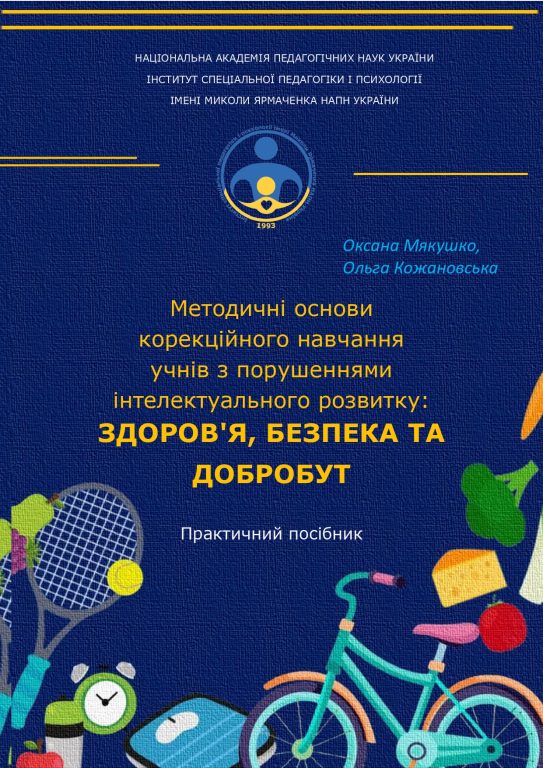 Мякушко О. І., Кожановська О. М. Методичні основи корекційного навчання учнів з порушеннями інтелектуального розвитку: здоров’я, безпека та добробут: практ. посіб. Київ: Інститут спеціальної педагогіки і психології імені Миколи Ярмаченка НАПН України, 2025. 138 с.