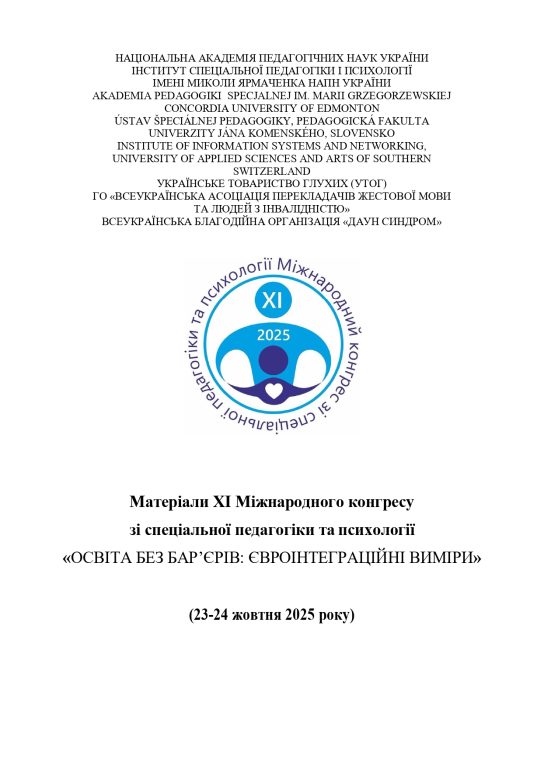 «Освіта без бар’єрів: євроінтеграційні виміри». Матеріали ХІ Міжнародного конгресу зі спеціальної педагогіки та психології. – К.: ІСПП імені Миколи Ярмаченка НАПН України, 2025. – 456 с.