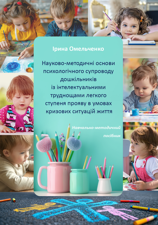 Омельченко І. М. Науково-методичні основи психологічного супроводу дошкільників із інтелектуальними труднощами легкого ступеня прояву в умовах кризових ситуацій життя: навчально-методичний посібник; Інститут спеціальної педагогіки і психології імені Миколи Ярмаченка НАПН України. Київ: Видавець Цибульська, 2025. 124 с.