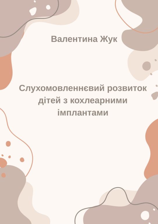 Жук В. В. Слухомовленнєвий розвиток дітей з кохлеарними імплантами: монографія. Київ: Інститут спеціальної педагогіки і психології імені Миколи Ярмаченка НАПН України, 2025. 176 с.