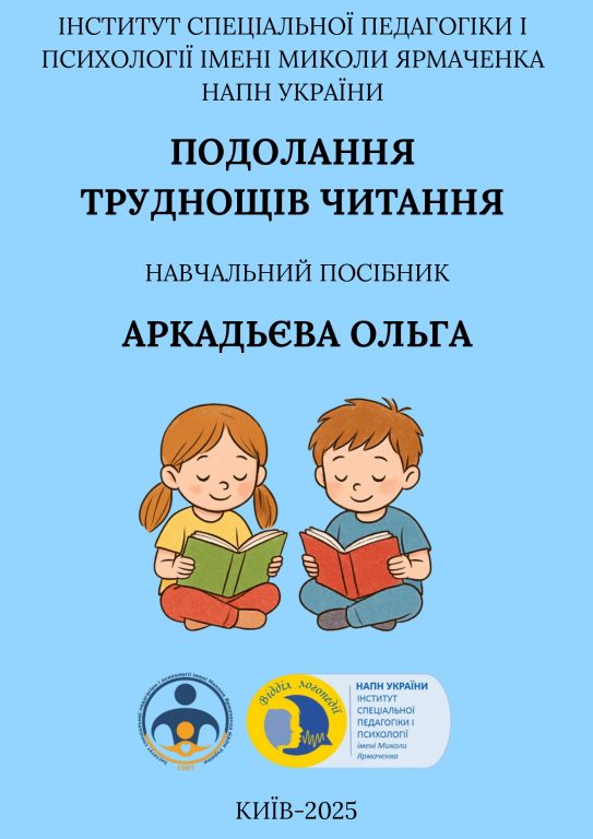 Аркадьєва О. О. Подолання труднощів читання: навч. посіб. – Київ: Інститут спеціальної педагогіки і психології імені Миколи Ярмаченка НАПН України, 2025. – 108 с.
