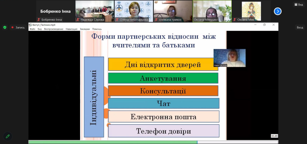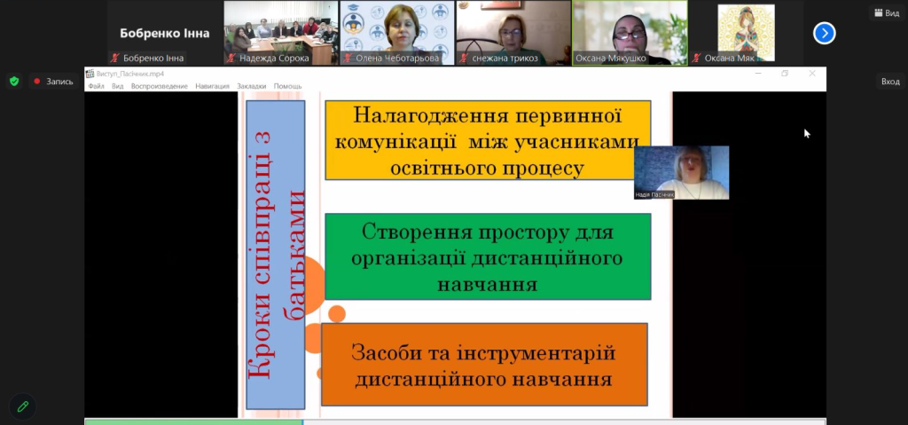 Надія Пасічник, спеціаліст першої категорії, вчитель української мови та літератури розкрила проблематику взаємодії педагогів і батьків дітей з ООП в умовах дистанційного навчання.