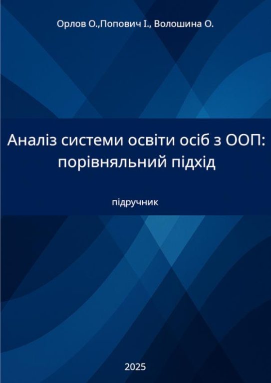 Орлов О., Попович І., Волошина, О. Аналіз системи освіти осіб з ООП: порівняльний підхід : підручник / О. В. Орлов, І. С. Попович, О. Ю. Волошина. ‒ К.: Вид. «Генеза», 2025. ‒ 148 с.