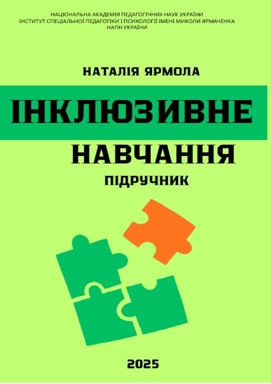 Ярмола Н. А. Інклюзивне навчання: підручник. Київ: Інститут спеціальної педагогіки і психології імені Миколи Ярмаченка НАПН України, 2025. 125 c.