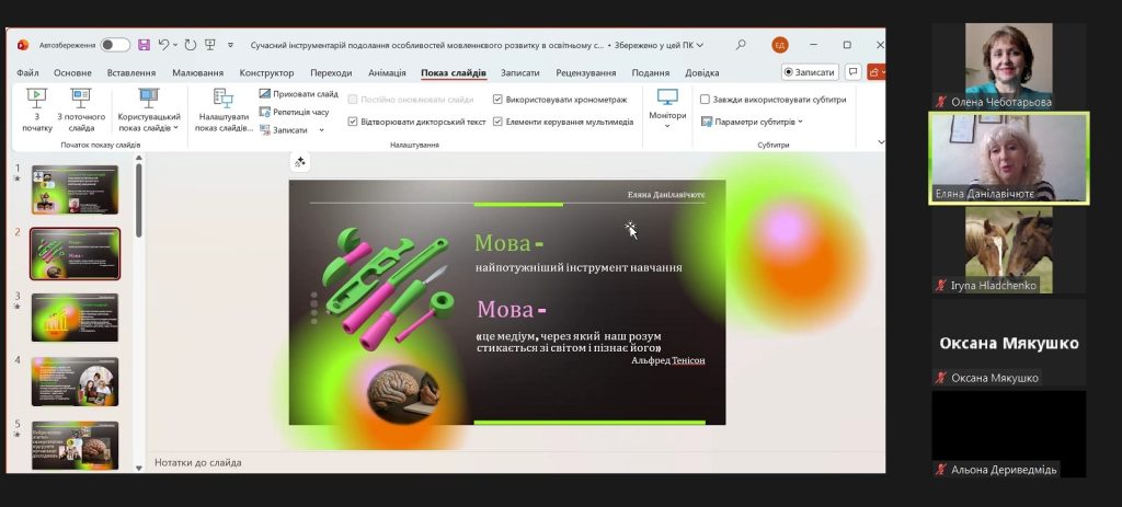 – Еляна Данілавічютє, канд. пед. наук, ст. наук. співроб., завідувач відділу логопедії Інституту – «Сучасний інструментарій подолання особливостей мовленнєвого розвитку в освітньому середовищі»;