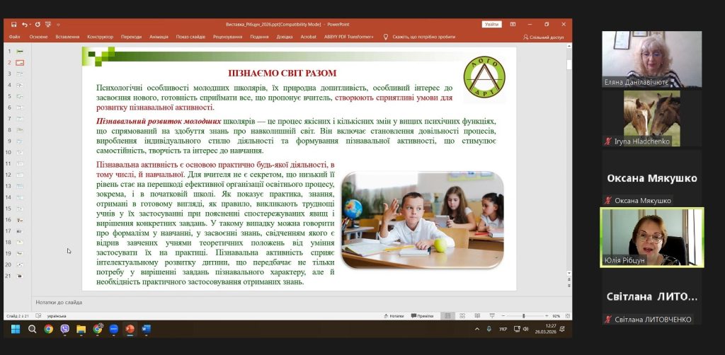 – Юлія Рібцун, канд. пед. наук, ст. наук. співроб., старший науковий співробітник відділу логопедії Інституту – «Пізнавально-мовленнєвий розвиток здобувачів початкової освіти в інклюзивному класі»;