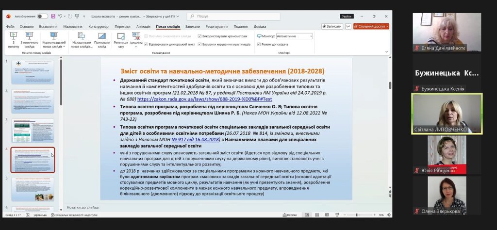 – Світлана Литовченко, докт. пед. наук, проф., завідувач відділу освіти дітей з порушеннями сенсорного розвитку Інституту, Світлана Кульбіда, докт. пед. наук, проф., завідувач відділу української жестової мови Інституту – «Підручникотворення для здобувачів з порушеннями слуху в сучасних умовах»;