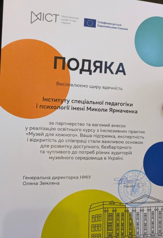 Дякуємо команді Національного музею історії України за участь Інституту у актуальному проєкті. Бажаємо усім успіхів та втілення інклюзивних практик у життя!